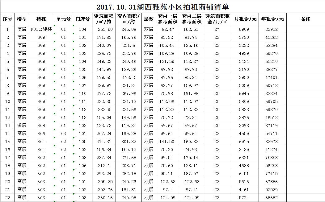 關(guān)注微信公眾號(hào)我公司受委托,定于2017年10月31日10時(shí)在本公司拍賣廳對(duì)以下小區(qū)門面房進(jìn)行公開拍租: