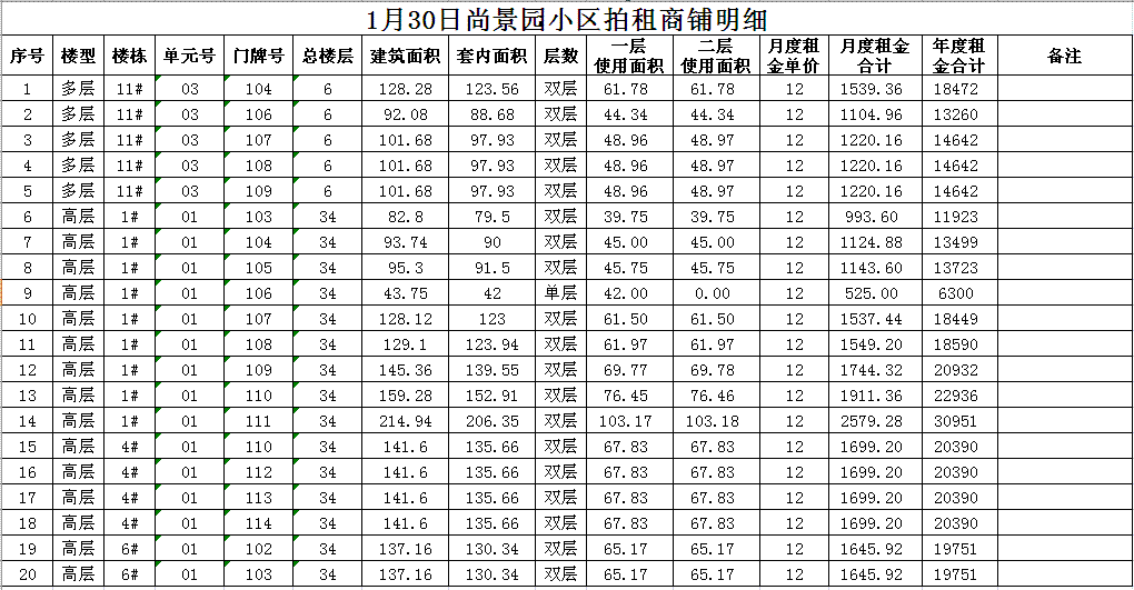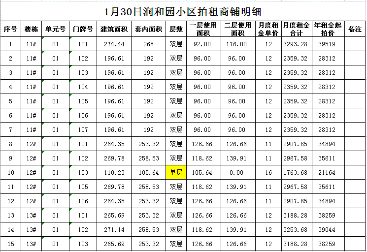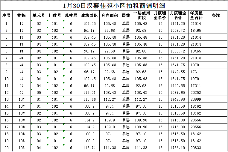 關(guān)注微信公眾號(hào)我公司受委托,定于2018年1月30日10時(shí)在本公司拍賣廳對(duì)以下小區(qū)門面房進(jìn)行公開拍租: