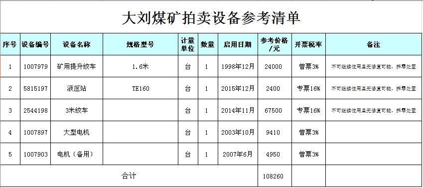 關(guān)注微信公眾號(hào)我公司受委托,定于2018年7月25日10時(shí)在徐州市中山南路55號(hào)副樓三樓本公司拍賣(mài)大廳公開(kāi)拍賣(mài):徐州市大劉煤礦、柳新煤礦的二手設(shè)備一批。
