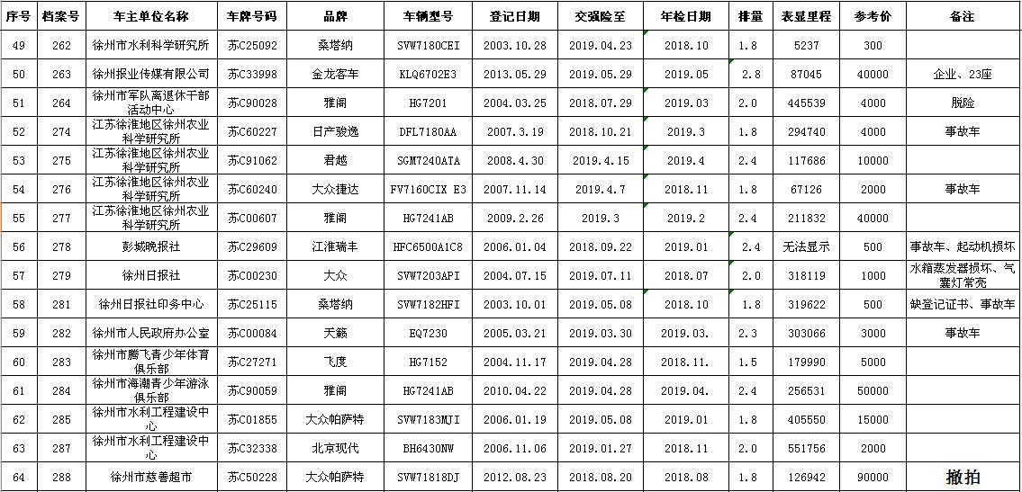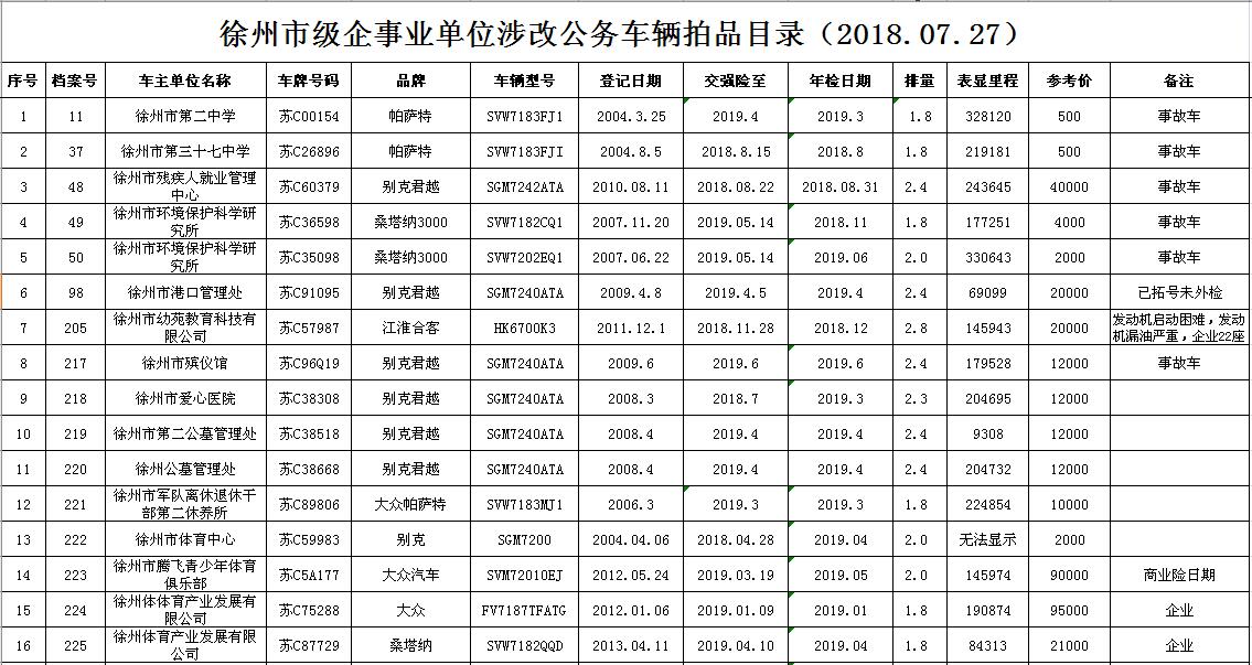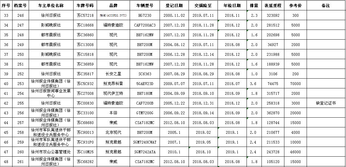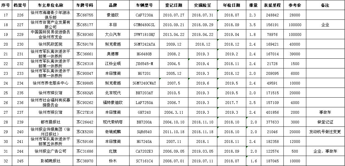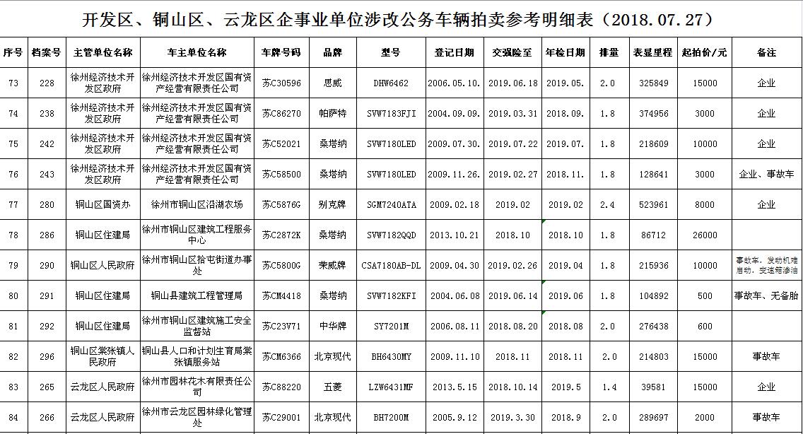 一、拍賣標(biāo)的:徐州市企事業(yè)單位改革公務(wù)車輛(詳見(jiàn)每期拍品目錄)。