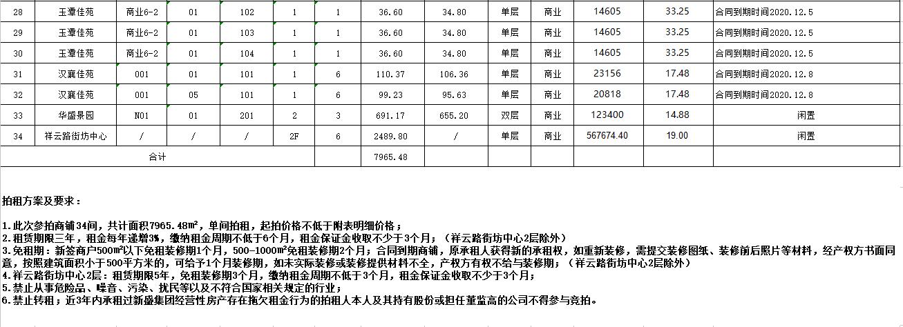 關(guān)注微信公眾號我公司受委托,定于2020年11月3日9:30在徐州云泉山莊第七會議室公開拍租以下社區(qū)房屋:潤和園、楓情水岸、湖西雅苑、嘉和雅苑、尚景園、玉潭佳苑、漢襄佳苑、華盛景園、祥云路街坊中心二層等。拍租房屋共34處,商鋪面積分別約為數(shù)十至數(shù)百平米,祥云路街坊中心二層約2490平米。社區(qū)商鋪?zhàn)馄谌辏?/SPAN>祥云路街坊中心二層辦公房租期五年。詳情請登錄本公司網(wǎng)站或微信公眾號查詢。