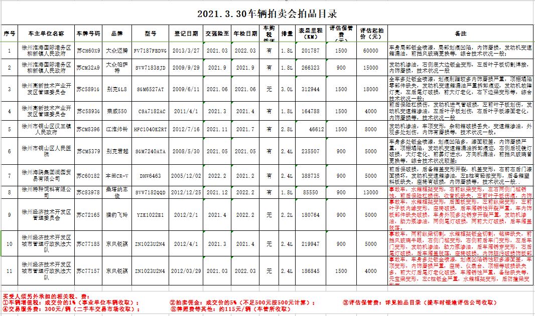 關(guān)注微信公眾號我公司受委托,定于2021年3月30日9:30在中拍平臺公開拍賣以下公務(wù)車輛: