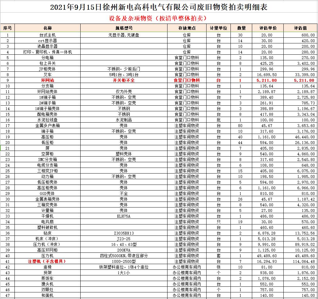 9月14、15日在徐州新電高科電氣有限公司集中展示。符合條件者請(qǐng)持上述資質(zhì)原件及公章等到本公司辦理報(bào)名,并交納10萬(wàn)元保證金即可參拍,報(bào)名截止至9月13日16時(shí)。