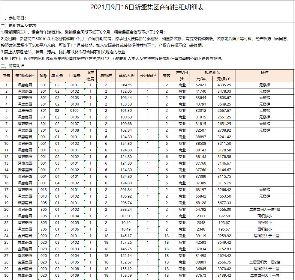 即日起展示。有意者請(qǐng)持有效證件至我公司報(bào)名,并交納每間商鋪1萬(wàn)元保證金即可參拍,報(bào)名截止至9月15日16時(shí)。